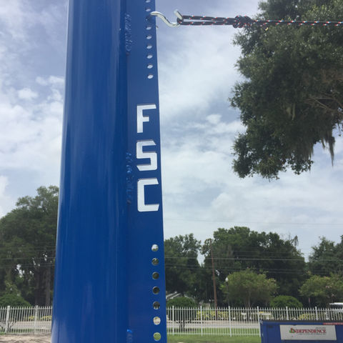 Florida Southern College reached out to Sand Court Experts to help consult, design and build a beach volleyball facility on their campus. Their beach volleyball facility features 3 courts, blue powder coated and engraved Sand Court Experts poles with SCE net hardware.